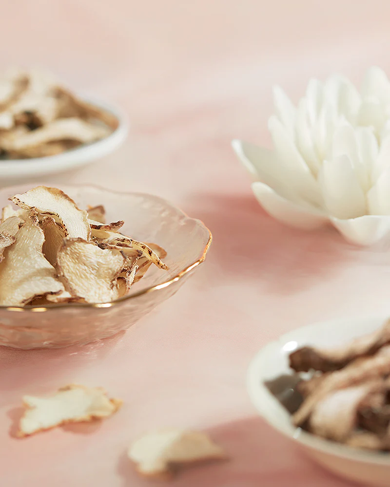 A modern interpretation of the famous Jade Skin Powder recipe (玉容散, yù róng sàn), this formula is enriched with Bai Zhu, Chinese ground orchid, Ampelopsis japonica, lotus flower, and peach blossom to combat photoaging and strengthen the skin's natural barrier while pampering your skin. Talc and alcohol-free.